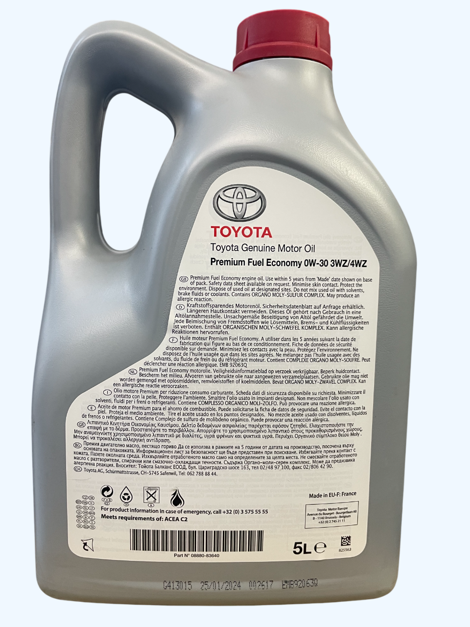 Оригінальна моторна олива Toyota Engine Oil 0W30 PFE 3WZ/4WZ 5 л – це високоякісне синтетичне автомастило, яке відповідає сучасним стандартам для бензинових і дизельних двигунів Toyota. Завдяки інноваційній формулі, олива забезпечує надійний захист двигуна, оптимальну роботу системи та зниження шкідливих викидів.