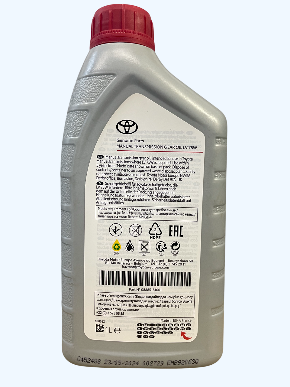 Трансмісійне масло Toyota LV 75W GL-4 — це спеціалізоване масло для механічних трансмісій Toyota, розроблене для забезпечення плавного перемикання передач та захисту від зносу в складних умовах експлуатації. Воно призначене для використання в автомобілях з механічними коробками передач, що забезпечує довговічність трансмісії та ефективне змащення при будь-яких температурних коливаннях.